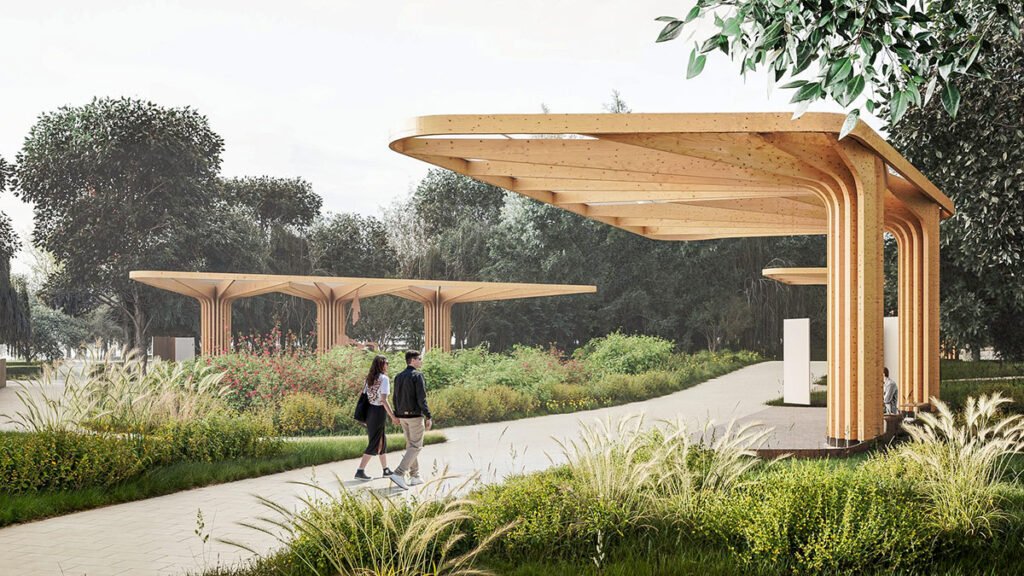 Уздовж «Алеї історії» розташовано дев’ять павільйонів, які розповідають про етапи боротьби українців за свободу — від Ярослава Мудрого до сучасної війни. Павільйони виготовлені з відновлюваної деревини, що підкреслює екологічність і сталість підходу.