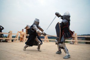 Також в суботу, 6 жовтня, відбудуться перші чвертьфінальні бої чемпіонату України з історичного фехтування «Витязь Київського Дитинця». На ристалищі зійдуться у запеклих боях одні з найсильніших команд: київська «Айна-Бера» та одеський «Євросоюз». Дзвін лицарських мечів знову звучатиме над Древнім Києвом.