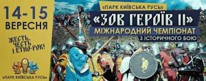 14-15 вересня у «Парку Київська Русь» відбудеться грандіозний спортивно-історичний захід – Міжнародний чемпіонат з історичного бою «Зов героїв ІІ». Більше ніж 400 найсильніших бійців з України, Росії, Білорусі та інших країн продемонструють свою силу, сміливість, лицарську честь. Помірятися силами на ристалищі Древнього Києва зберуться спортсмени більш ніж 40 команд, серед яких представники національних збірних з історичного бою, переможці та учасники міжнародних чемпіонатів, найбільш титуловані бійці світу.