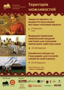На виставці, яка є завершальним етапом проекту, будуть представлені зіткані на верстаті чоловічі та жіночі пояси, дерев’яні цебрики, пташки із соломи та гончарні вироби – свищики, миски і горнятка. Під час відкриття організатори розкажуть про маршрут ознайомчої поїздки на Гуцульщину, яка відбудеться наступного тижня для слухачів лекцій про агротуризм. Також учасників майстер-класів очікує подорож до Львівської національної академії мистецтв.