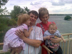 У Людмили є дочка Каріна, 3 роки, та син Іванко, якому один рік і три місяці (на фотографії вони з чоловіком Людмили Сергієм). Її власні діти зараз у тому ж віці, що й дітлахи у сиротинці.